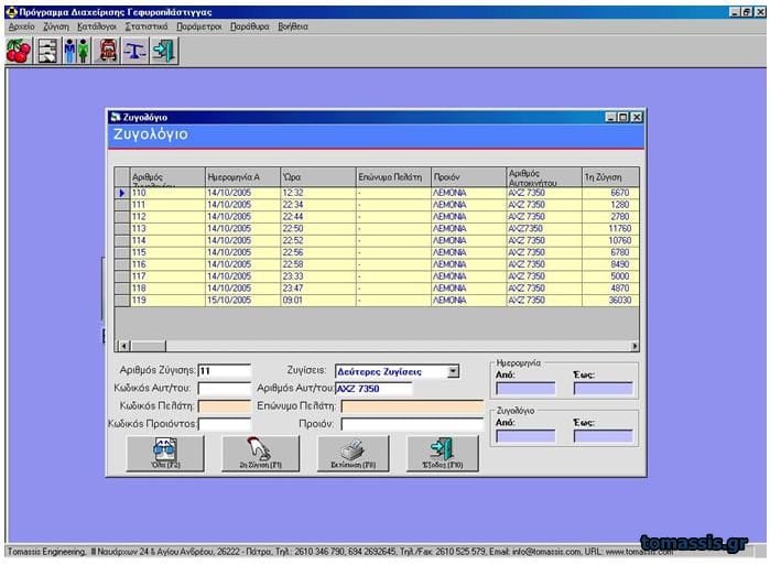 - Κατάλογος αυτοκινήτων με κωδικούς, πινακίδες, μόνιμα απόβαρα (εφόοσον υπάρχουν), κ.τ.λ.