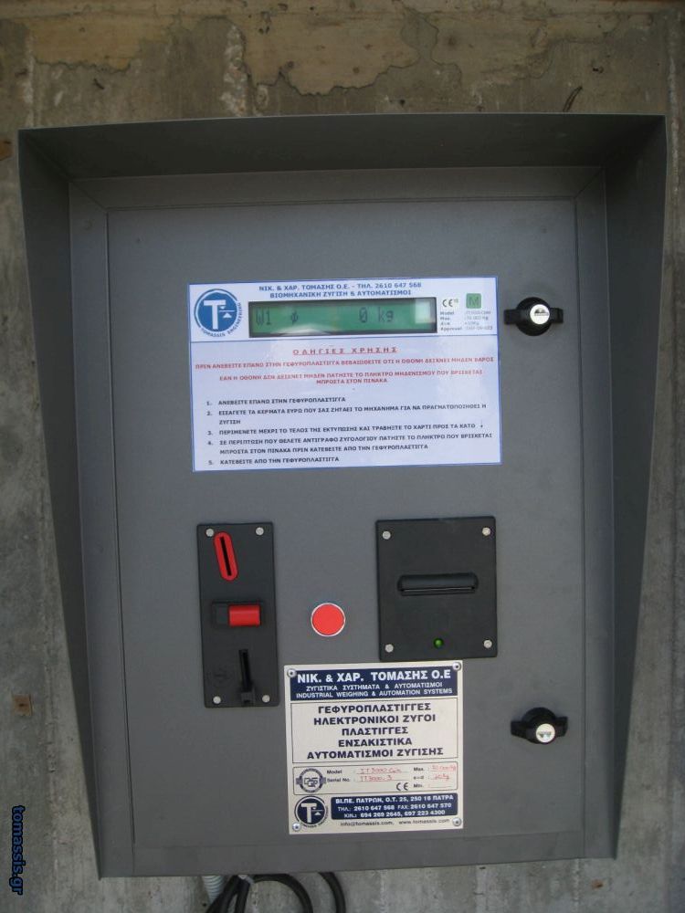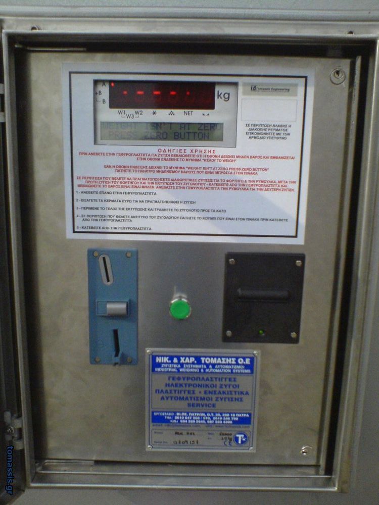 Αυτόματο σύστημα ζύγισης χωρίς την παρουσία ζυγιστή. Η ζύγιση μπορεί να πραγματοποιηθεί πολύ απλά, γρήγορα, και αυτόματα αρκεί ο οδηγός του οχήματος να εισάγει το ανάλογο ποσό κερμάτων στον αυτόματο κερματοδέκτη. Η εκτύπωση του ζυγολογίου πραγματοποιείται αυτόματα μέσω του ενσωματωμένου εκτυπωτή που διαθέτει ο αυτοματισμός.
