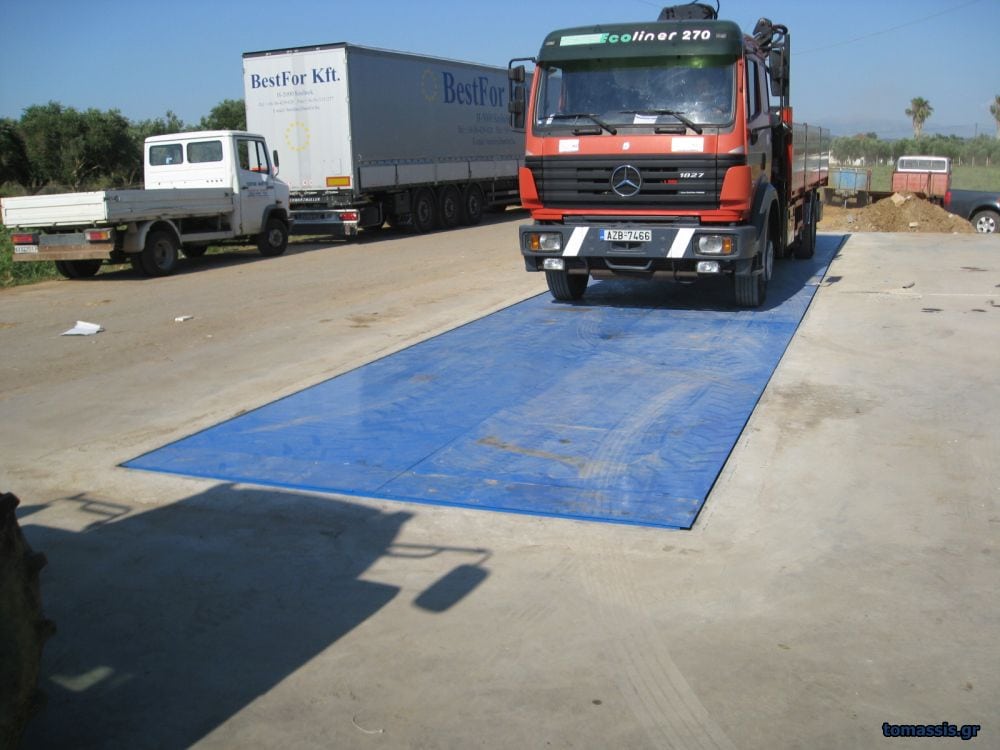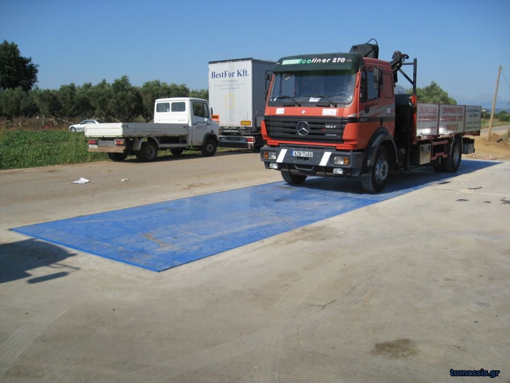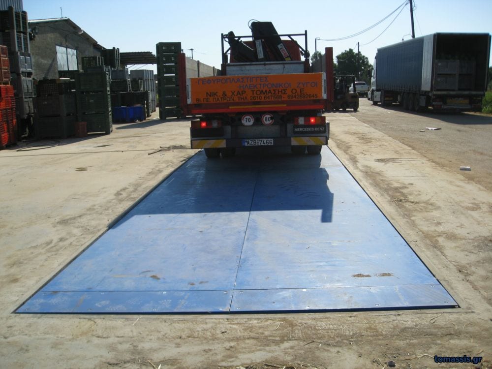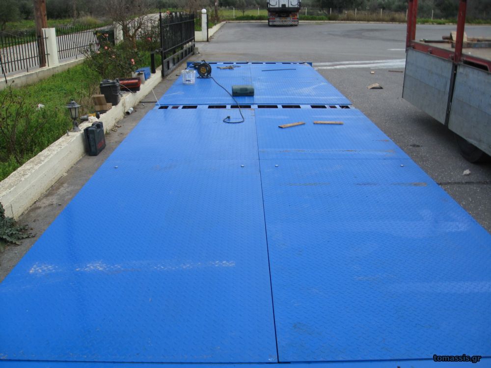 - Διατίθεται σε διάφορα μήκη από 4 έως και 24μ. πλάτους 3μ και ζυγιστικής ικανότητας από 20 έως και 80 τόννους.