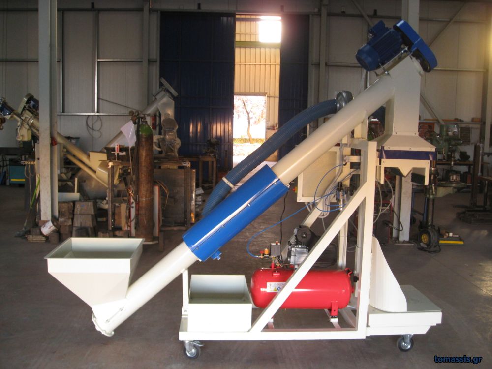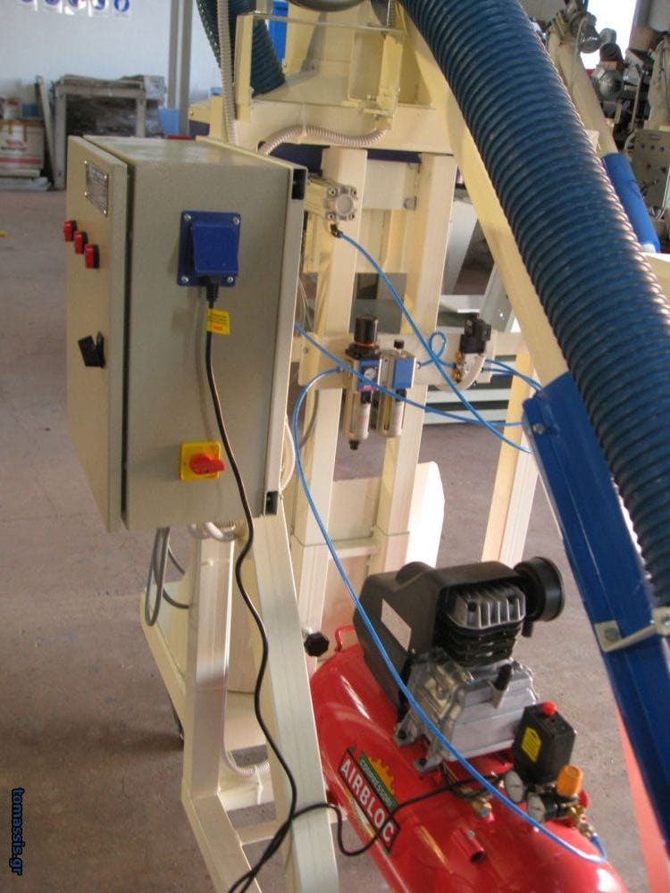 - Διαθέτει κομπρεσέρ αέρος για τη λειτουργία των πνευματικών σιαγόνων καθώς και σύστημα απομάκρυνσης της σκόνης κατά τη διάρκεια ενσάκισης.