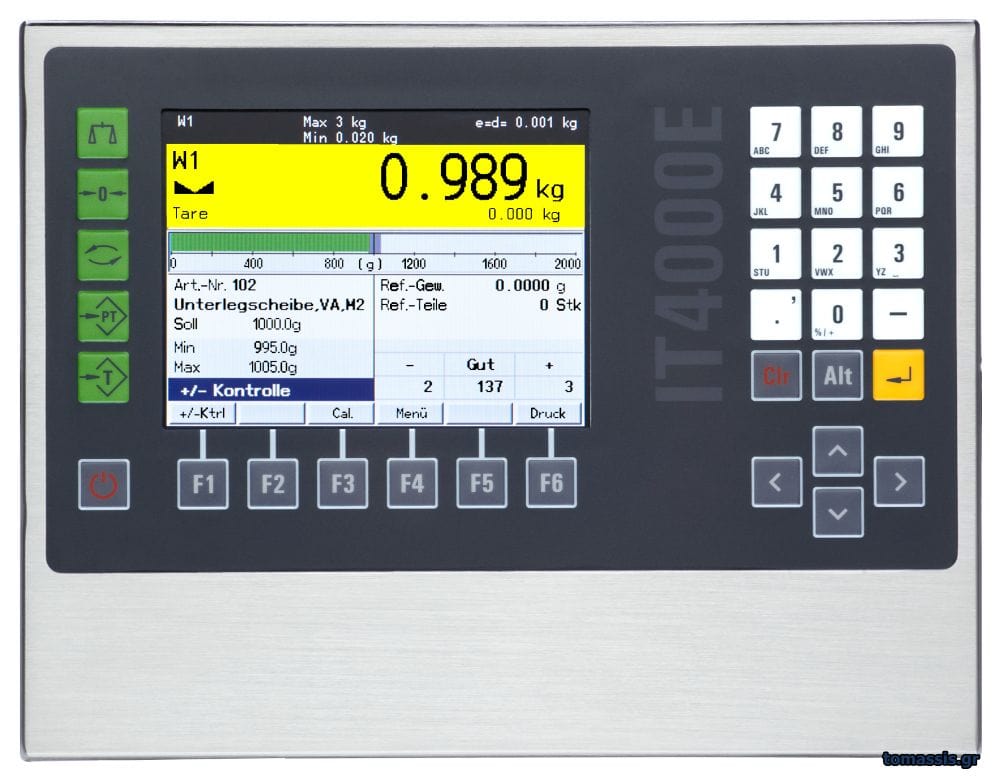 Ο ηλεκτρονικός ενδείκτης ΙΤ4000 αποτελεί την πιο αξιόπιστη λύση ζυγιστικού τερματικού κατάλληλο για βιομηχανική χρήση σε εταιρείες χημικών, τροφίμων, φαρμακοβιομηχανίες, λατομεία, κ.τ.λ. Ο βιομηχανικός του σχεδιασμός με το ευέλικτο hardware και software που διαθέτει το καθιστά ως το ιδανικότερο ζυγιστικό σε εφαρμογές ζύγισης και εκτύπωσης, μέτρησης τεμαχίων, εφαρμογές γεφυροπλάστιγγας, έλεγχο βάρους, και εφαρμογές δοσομέτρησης.